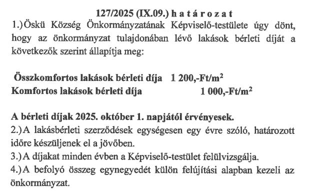 sk Kzsg nkormnyzatnak Kpvisel-testlete, szeptember 9-i nylt lsen dnttt a brlaksok brleti djjrl: