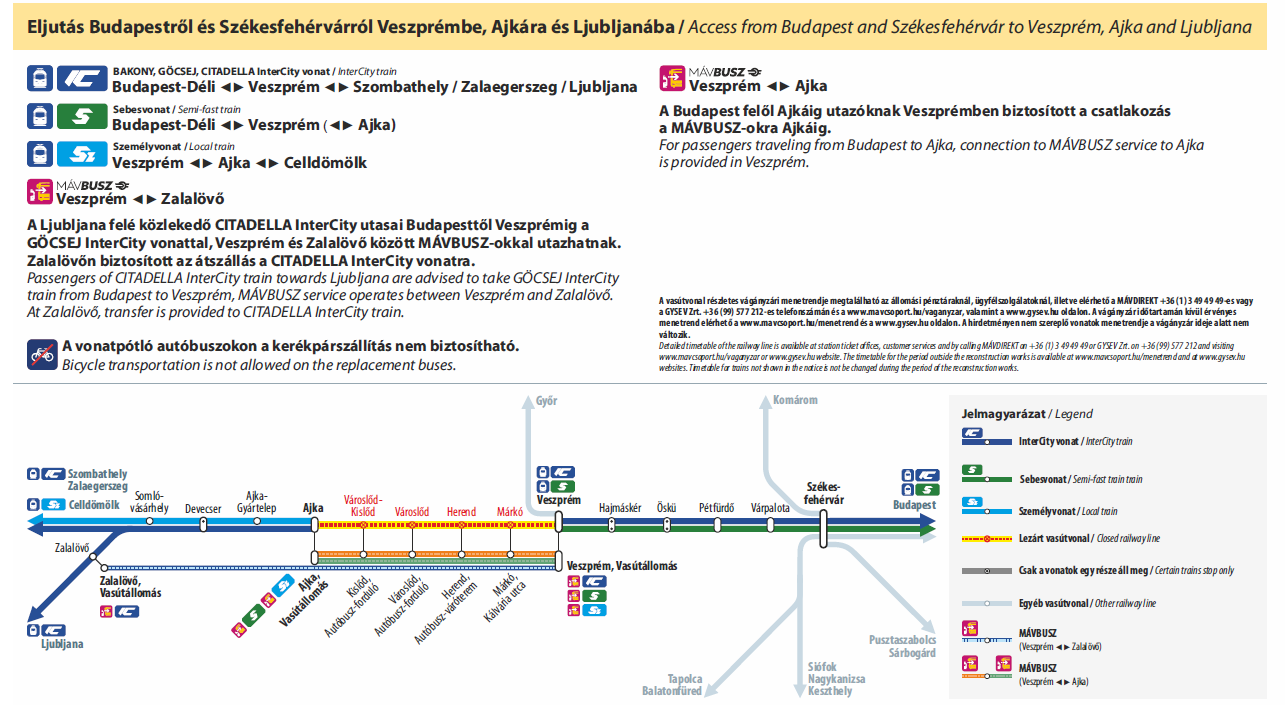A vonatptl autbuszokon a vasti menetjegyek rvnyesek, egyttes elhelyezs s kerkprszllts nem biztosthat!