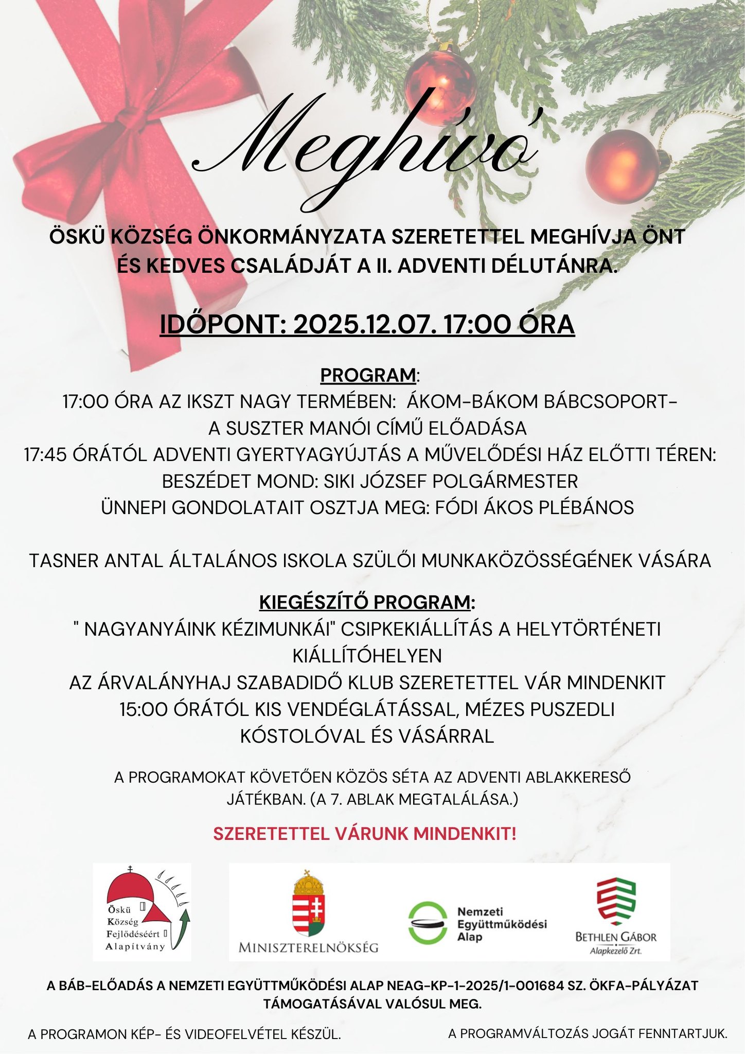 A felajnlsokat az IKSZT-ben vrjuk 2025. december 18-ig.