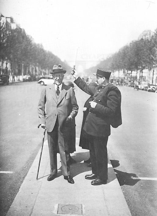 "William Phelps Eno (kpen balra) megalkotta az els kzlekedsi szablyzatot, hogy cskkentse a balesetek szmt. Nevhez fzdik a stoptbla, a piros lmpa, a gyalogtkel, az egyirny utca, az elsbbsgads s a jobbra tarts.