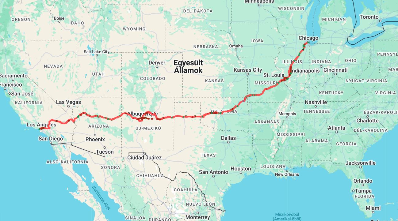 Amerika leghresebb tvonalt, ami sszekttte az USA keleti s nyugati orszgrszt, Chicago-t s Los Angeles-t, lnyegben majdnem teljes hosszban hasznlatban volt mr 1926.11.11 ta.