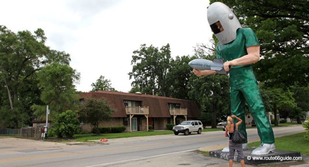A szelek vrost elhagyva, a rgi 66-os t, tbbnyire az I-55-s ngysvos autplya mentn halad tovbb, dlnek. A sztrdhoz kzel, az 53-as t mellett fekszik Wilmington vrosa a Kankakee foly mentn. Itt talljuk a 66-os t egyik ikonikus jelkpt, a 30 lb magas Gemini Giant szobrot.