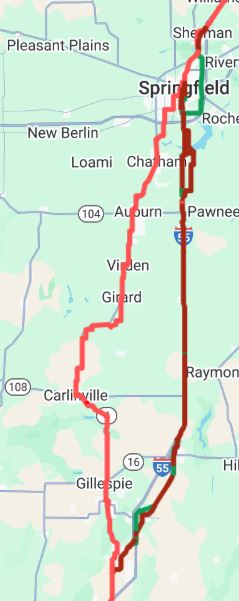 A '30 utni, mdostott nyomvonal egyenesen dlfel haladt tovbb, a ksbbiekben megpl I-55-s autplya mentn, mg a legrgebbi 1926-30 kztt hasznlt szakasz, szmos kisvroson keresztl kanyarog, egszen Staunton dli rszig, ahol ismtelten sszekapcsoldik a mdostott nyomvonallal majd dlnyugati irnyt vesz, St. Louis fel.