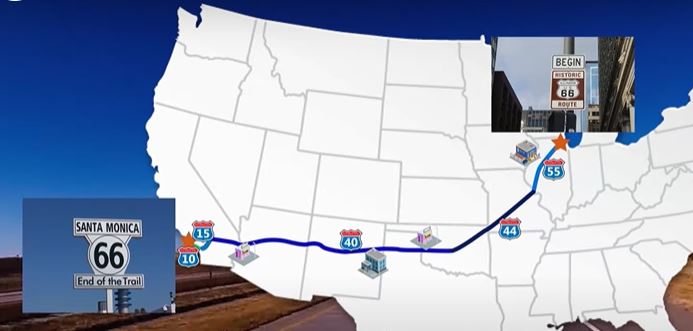 Illinois-ban az I-55-s mellett, Missouri, Kansas s Oklahoma llam fvrosig nagyjbl az I-44-es sztrdt kveti a legends t. Innen azonban ismt egy msik autplya az I-40-es mentn fog tovbb kanyarogni az Orszgutak anyja, egszen Kalifornia llamig.