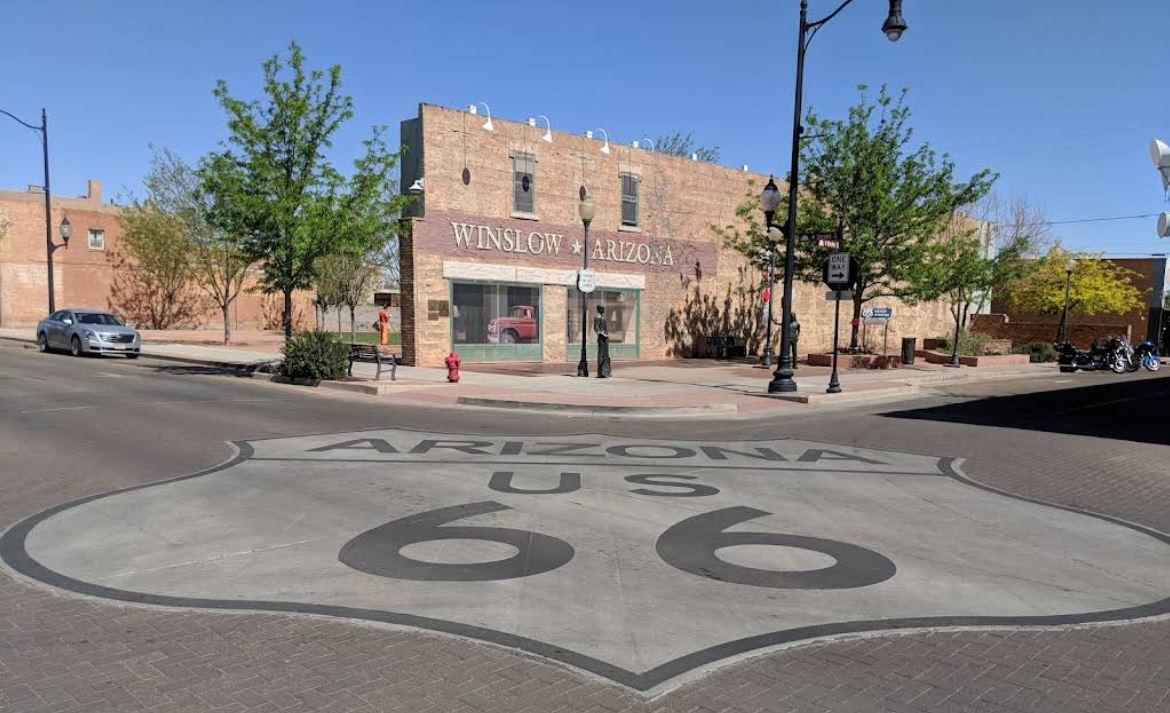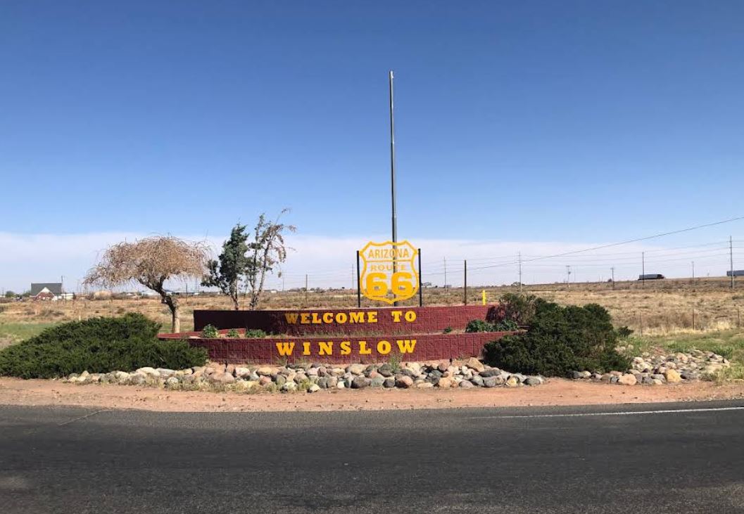 Tovbb utazva Winslow vrosba rnk, ahol hossz id utn elszr ltunk 66-os tbaigazt tblt.