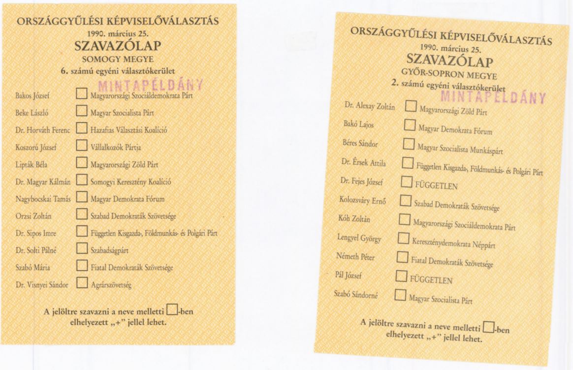 A rendszervlts utni els szabad orszggylsi vlasztsok megtartsval virgozni kezdett Magyarorszgon a tbbprtrendszer. 1990-ben tbb mint 50 klnbz formci prblt indulni a vlasztsokon, kzlk azonban csak 28 szervezet tudott valamely terleti szavazlapon egyltaln megjelenni, orszgosan pedig 12 prt tudott minden szavazlapon szerepelni.